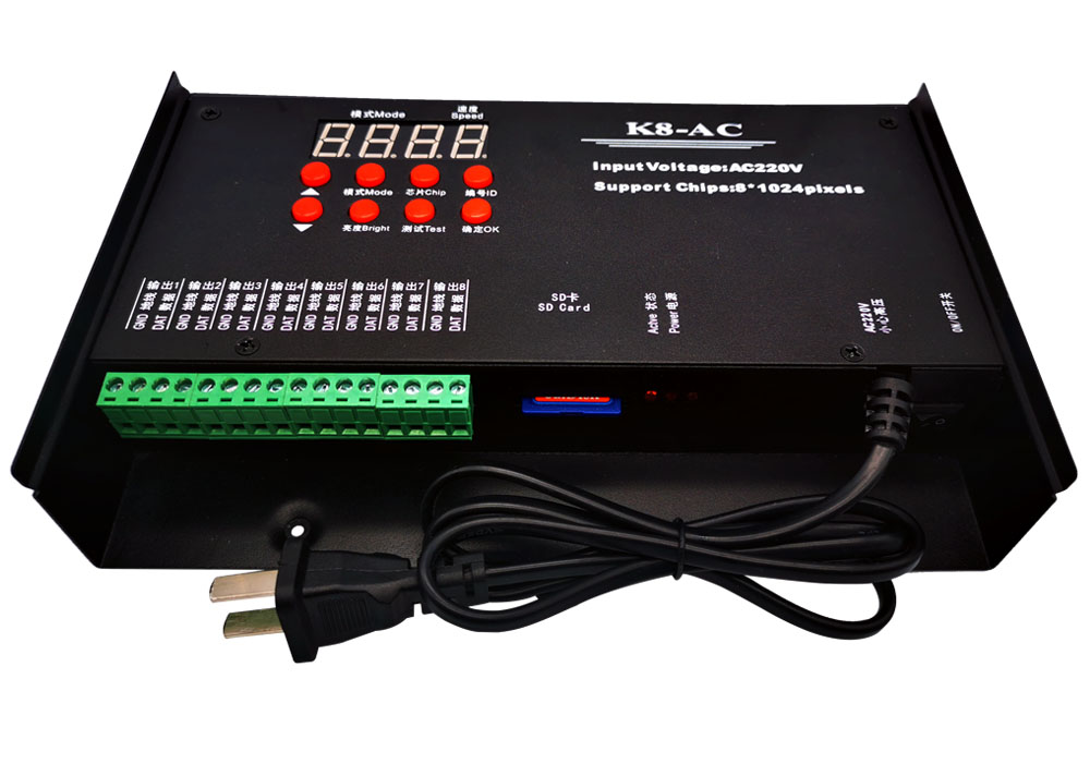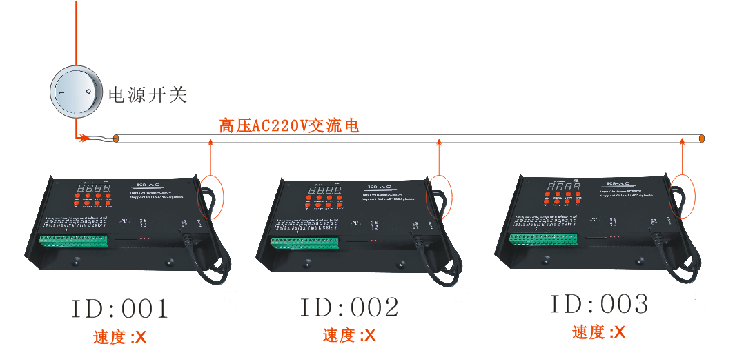 4、 使用AC220V交流电,设置对应控制器ID编号,多台同时供电,效果同步显示。