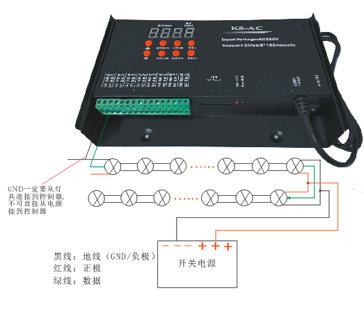 3、 控制器只可控制SPI信号的灯具,每个端口独立输出,可带